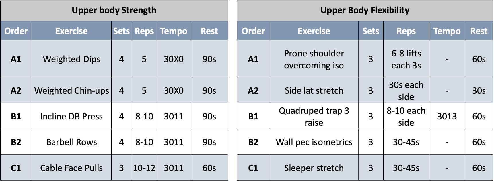 The ultimate goal here is to make it as simple as possible to introduce flexibility exercises into your strength sessions. Below is a straightforward process that we can follow for both upper and lower body.
