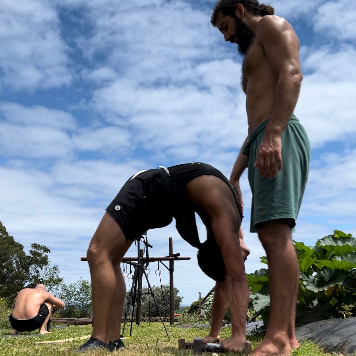 In the picture below you can see Erdi demonstrating the technique on me a few weeks back during the learningtohuman retreat. Erdi places his hand on my chest and encourages me to apply a light pressure back onto his hand. As I apply more pressure onto his hand, I’m effectively getting deeper into the stretch. In this case, the bridge.